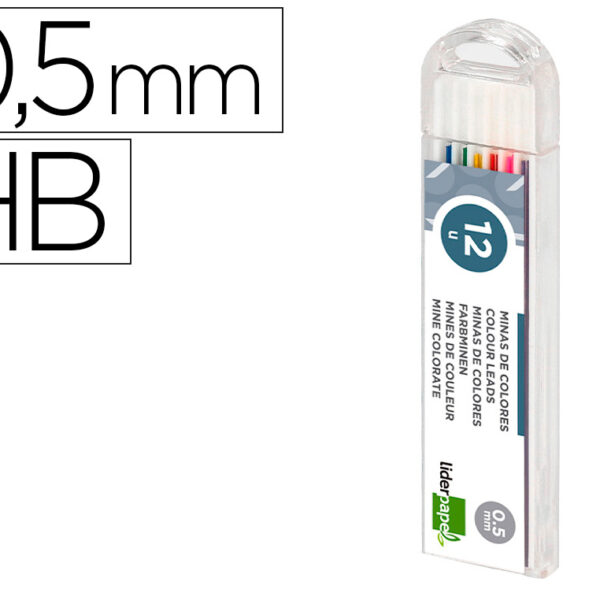 MINAS LIDERPAPEL CORES SORTIDAS DE 0.5 MM ESTOJO DE 12 MINAS