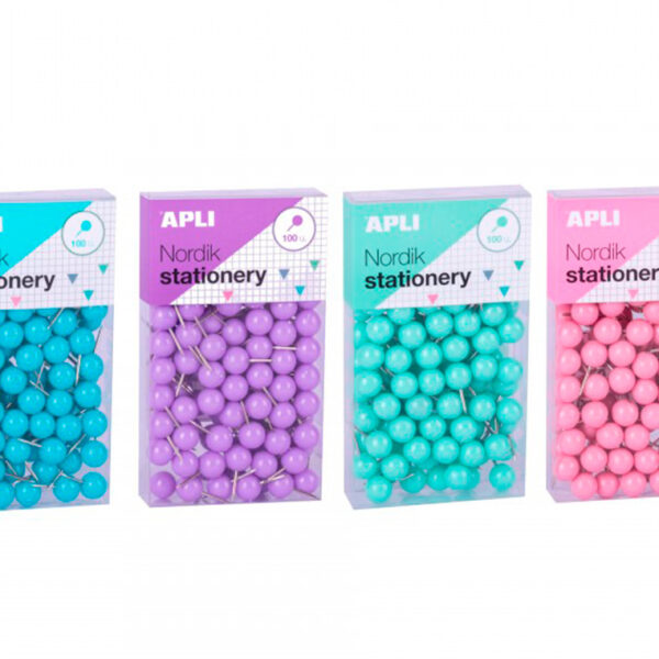 ALFINETES DE SINALIZACAO APLI REDONDOS NORDIK 9 X 20 MM CORES PASTEL SORTIDAS CAIXA DE 100 UNIDADES