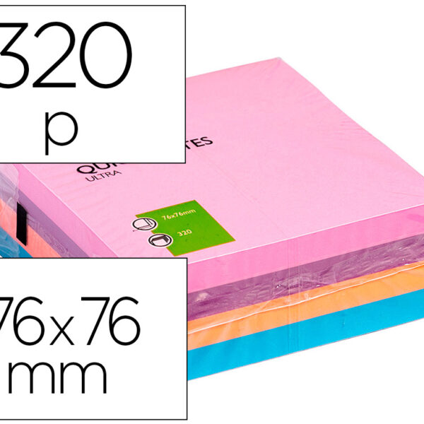 BLOCO DE NOTAS ADESIVAS Q-CONNECT SORTIDO 76 X 76 MM COM 320 FOLHAS