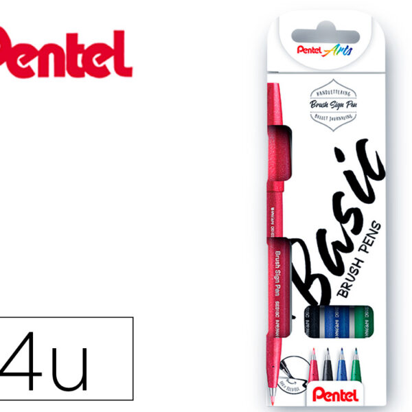 CANETA PINCEL PENTEL TOUCH EM BLISTER DE 4 CORES PRETO VERMELHO AZUL E VERDE
