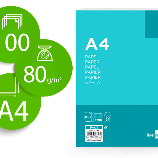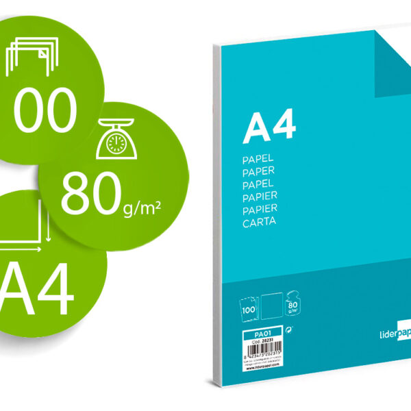 PAPEL LIDERPAPEL DIN A4 80 GR EMBALAGEM DE 100 FOLHAS