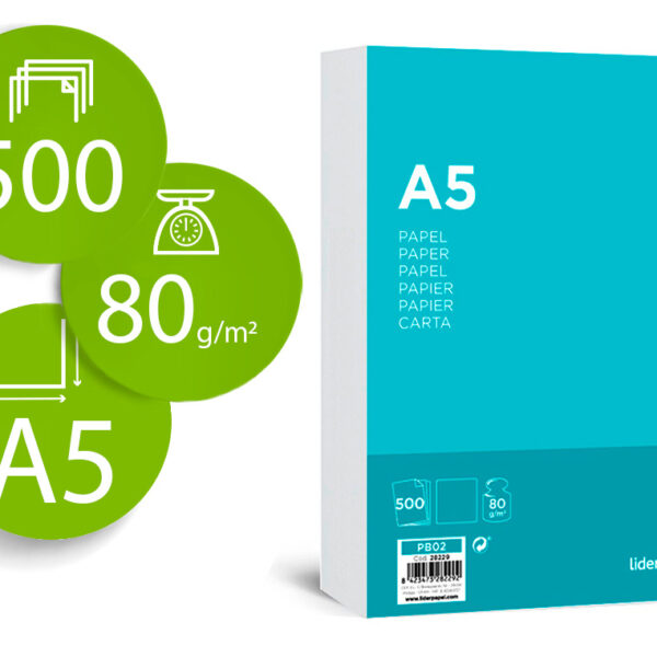 PAPEL LIDERPAPEL DE ESCRITA DIN A5 80 GR LISO EMBALAGEM DE 500 FOLHAS