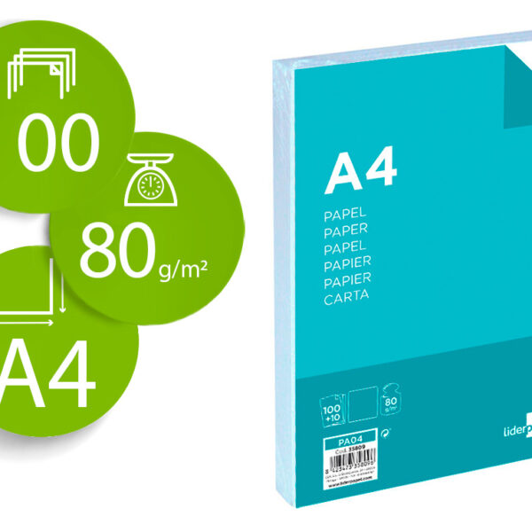 PAPEL LIDERPAPEL DIN A4 80 GR EMBALAGEM DE 100 FOLHAS + 10 FOLHAS GRATIS