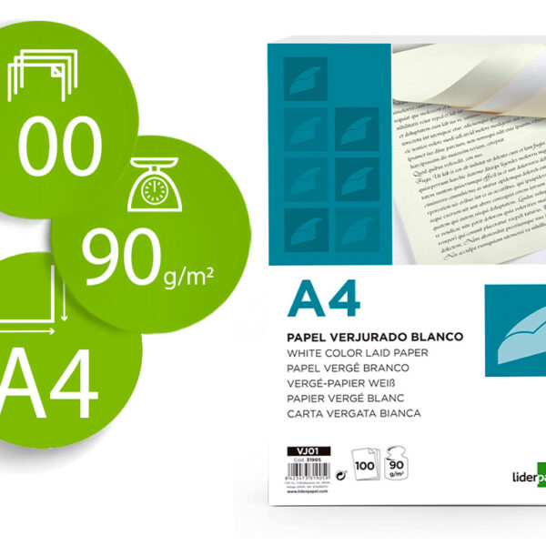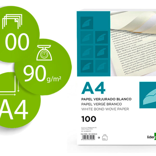 PAPEL VERGE LIDERPAPEL DIN A4 90 GR BRANCO EMBALAGEM DE 100 FOLHAS