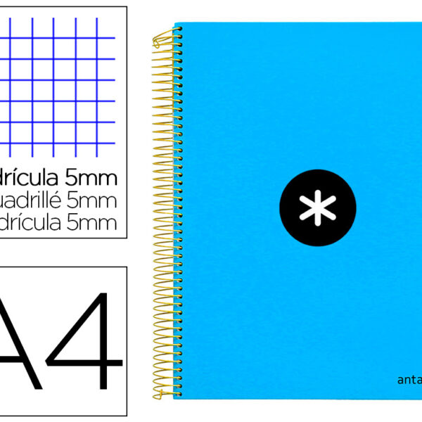 CADERNO ESPIRAL DIN A4 ANTARTIK CAPA FORRADA 120 F 100 GR QUADRICULA 5 MM 5 BANDAS DE CORES COR AZUL