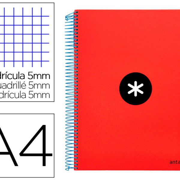 CADERNO ESPIRAL DIN A4 ANTARTIK CAPA FORRADA 120 F 100 GR QUADRICULA 5 MM 5 BANDAS DE CORES COR VERMELHO