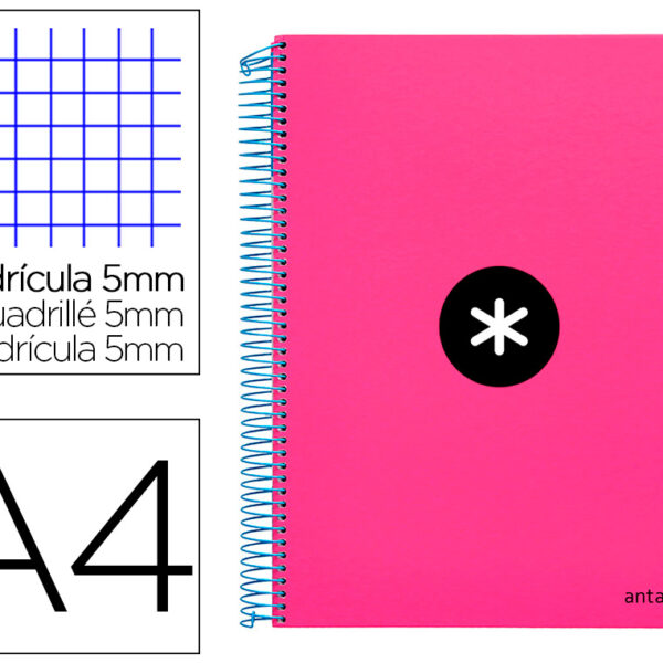 CADERNO ESPIRAL DIN A4 ANTARTIK CAPA FORRADA 120 F 100 GR QUADRICULA 5 MM 5 BANDAS DE CORES COR ROSA F.
