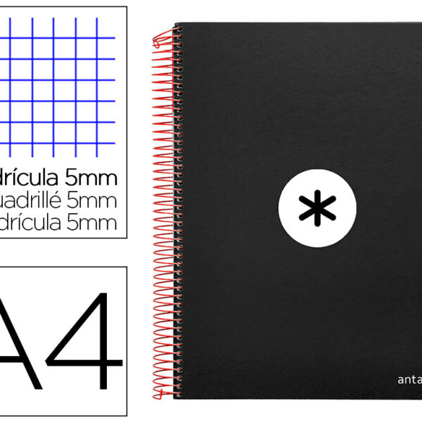 CADERNO ESPIRAL DIN A4 ANTARTIK CAPA FORRADA 120 F 100 GR QUADRICULA 5 MM 5 BANDAS DE CORES COR PRETO