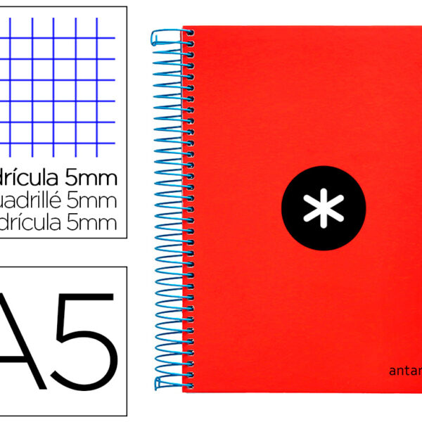 CADERNO ESPIRAL DIN A5 ANTARTIK CAPA FORRADA 120 F 100 GR QUADRICULA 5 MM 5 BANDAS DE CORES COR VERMELHO