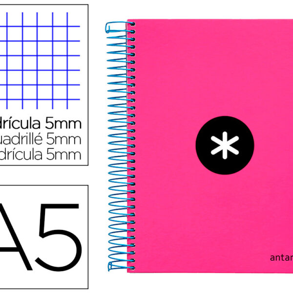 CADERNO ESPIRAL DIN A5 ANTARTIK CAPA FORRADA 120 F 100 GR QUADRICULA 5 MM 5 BANDAS DE CORES COR ROSA F.