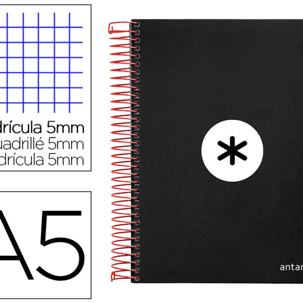 CADERNO ESPIRAL DIN A5 ANTARTIK CAPA FORRADA 120 F 100 GR QUADRICULA 5 MM 5 BANDAS DE CORES COR PRETO