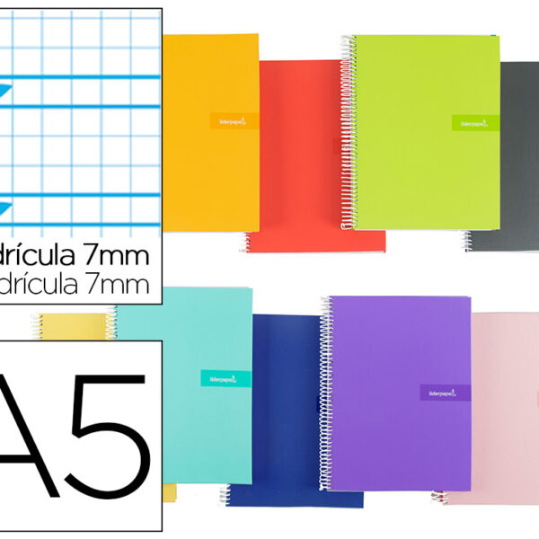 CADERNO ESPIRAL LIDERPAPEL CRAFTY MICRO DIN A4 CAPA FORRADA 120 F 90 GR QUADRICULA 5 MM 5 BANDAS DE CORES 4 CORES COR VE