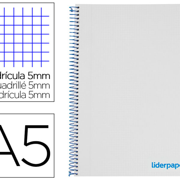 CADERNO ESPIRAL LIDERPAPEL DIN A5 ANTARTIK CAPA DURA 80 F 100 GR QUADRICULA 5 MM COM MARGEM COR PRETO – QT.1