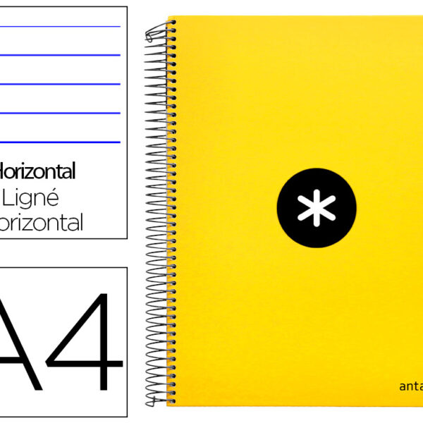 CADERNO ESPIRAL LIDERPAPEL DIN A4 ANTARTIK CAPA POLIPROPILENO 120 F 100G PAUTADO 5 BANDAS 4 FUROS COR AMARELO F. – QT.1