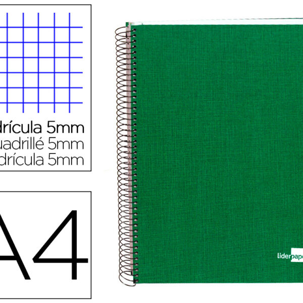 CADERNO ESPIRAL LIDERPAPEL JOLLY MICRO DIN A4 CAPA FORRADA 140 F 75 GR QUADRICULA 5MM 5 BANDAS DE CORES 4 FUROS COR VERD