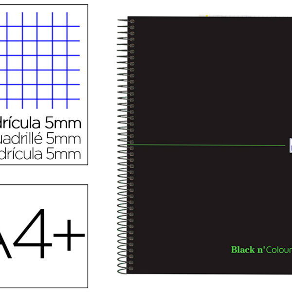 CADERNO ESPIRAL OXFORD EBOOK 1 CAPA DE PLASTICO DIN A4+ 80 F QUADRICULA 5 MM BLACK’N COR LIMA – QT.1