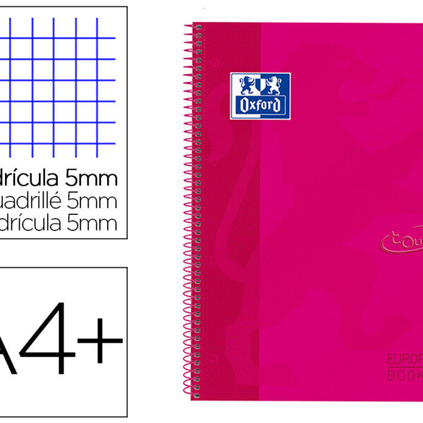 CADERNO ESPIRAL OXFORD EBOOK 1 CAPA EXTRADURA DIN A4+ 80 F QUADRICULA 5 MM ROSA FRAMBOESA TOUCH