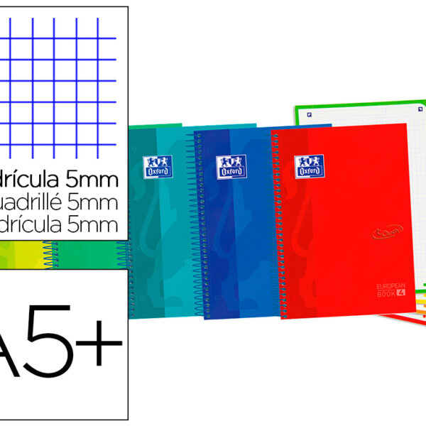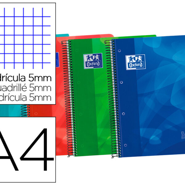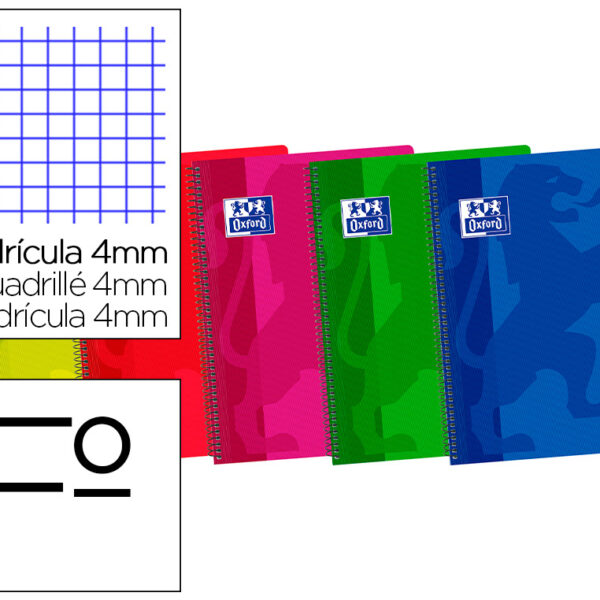 CADERNO ESPIRAL OXFORD EBOOK 4 CAPA EXTRADURA DIN A5+ 120 FOLHAS QUADRICULA 5 MM CORES SORTIDAS TOUCH