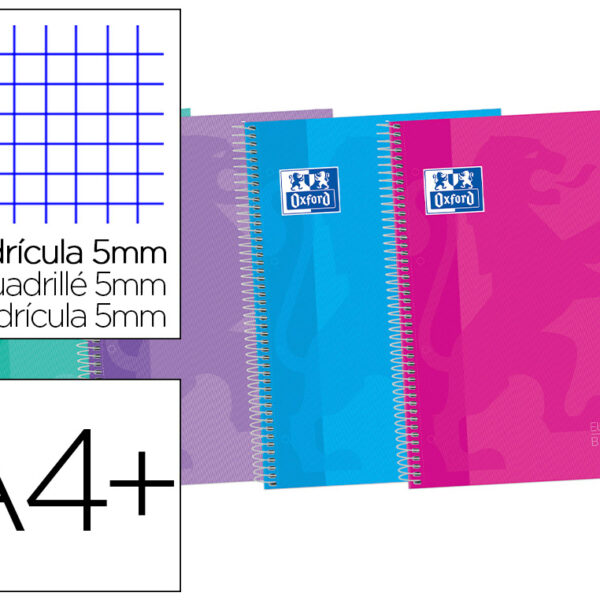 CADERNO ESPIRAL OXFORD EBOOK 5 CAPA EXTRADURA DIN A4+ 120 F QUADRICULA 5 MM CORES SORTIDAS TOUCH