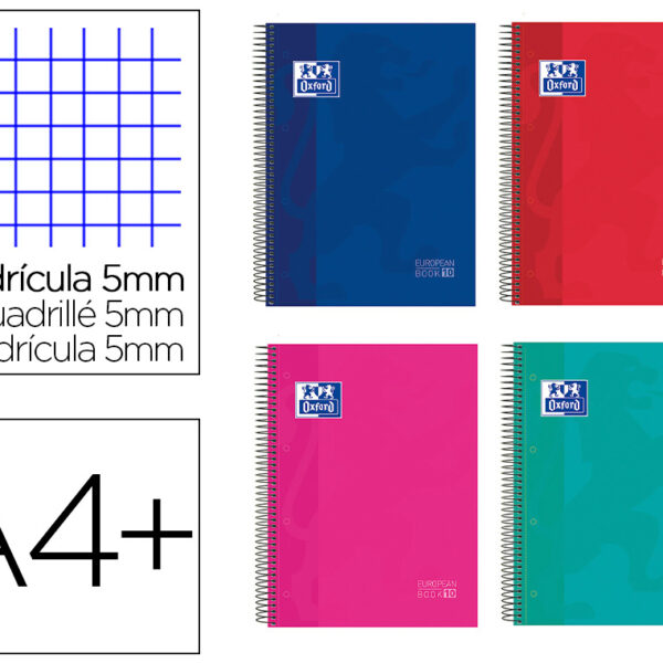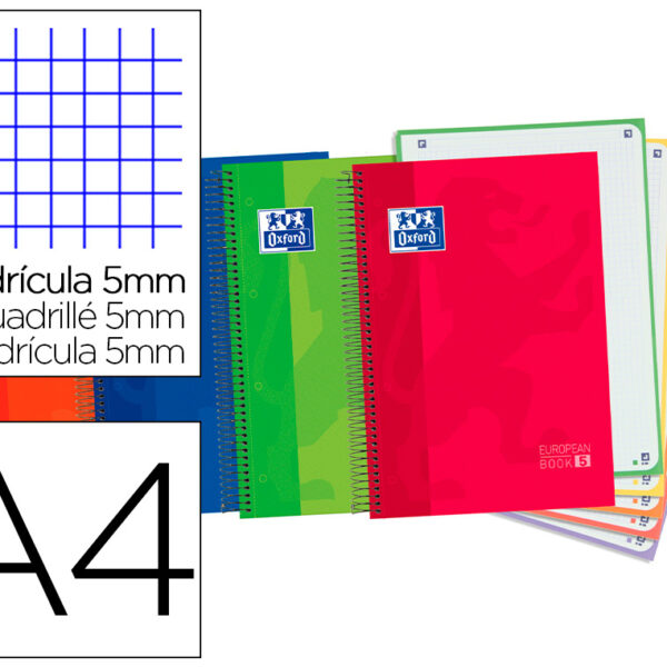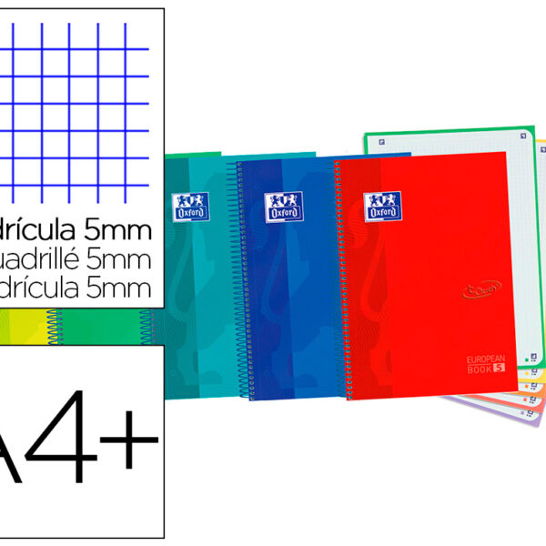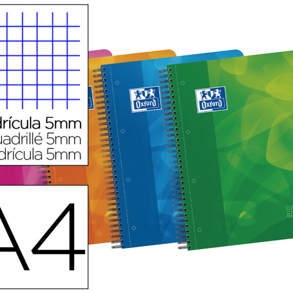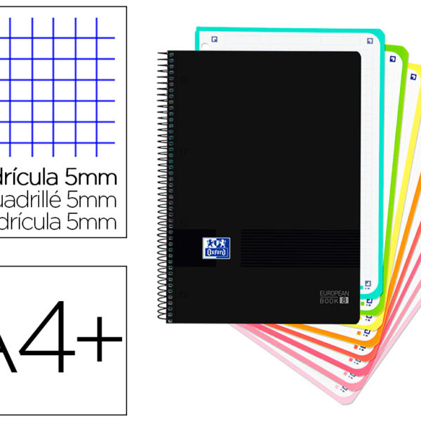 CADERNO ESPIRAL OXFORD EUROPEANBOOK 10 SCHOOL CLASSIC CAPA EXTRADURA DIN A4+ 150 FOLHAS QUADRICULA 5 MM COM MARGEM