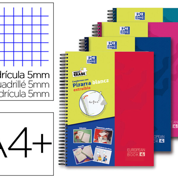 CADERNO ESPIRAL OXFORD EUROPEANBOOK 5 WRITE&ERASE SCHOOL CLASSIC DIN A4+ 120 FOLHAS QUADRICULA 5 MM COM MARGEM