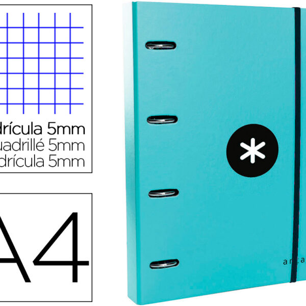 PASTA ANTARTIK COM RECARGA E ABA DIN A4 QUADRICULA 5MM FORRADA 4 ANEIS 40MM COR MENTA