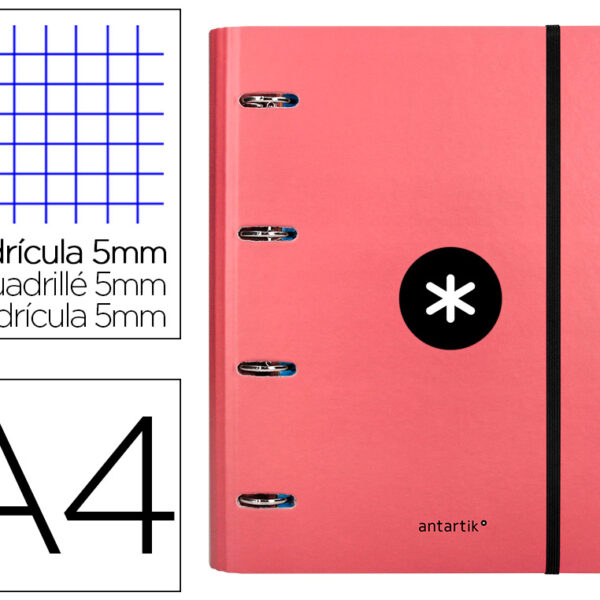 PASTA ANTARTIK COM RECARGA E ABA DIN A4 QUADRICULA 5MM FORRADA 4 ANEIS 40MM COR CORAL
