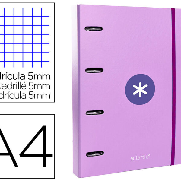 PASTA ANTARTIK COM RECARGA E ABA DIN A4 QUADRICULA 5MM FORRADA 4 ANEIS 40MM COR LAVANDA