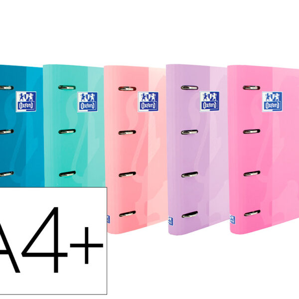 PASTA COM RECARGA OXFORD EUROPEANBINDER TOUCH PASTEL 4 ANEIS 35 MM DIN A4+ CAPA EXTRADURA COM ELASTICOS CORES SORTIDAS