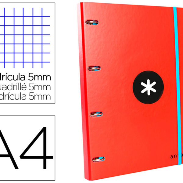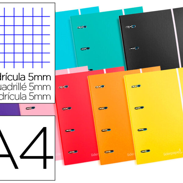 PASTA DE ELASTICOS LIDERPAPEL DE ANEIS COM RECARGA DIN A5 120 FOLHAS 70 GR QUADRICULA 5MM 4 ANEIS REDONDOS 20 MM