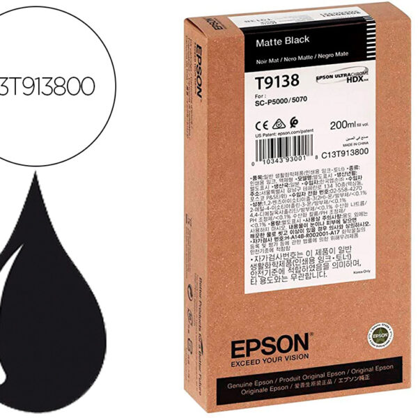 TINTEIRO EPSON T9138 MATTE PRETO INK 200ML