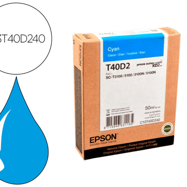 TINTEIRO EPSON ULTRACHROME XD2 CIAN T40D240 SC-T3100 / SC-T5100 50 ML