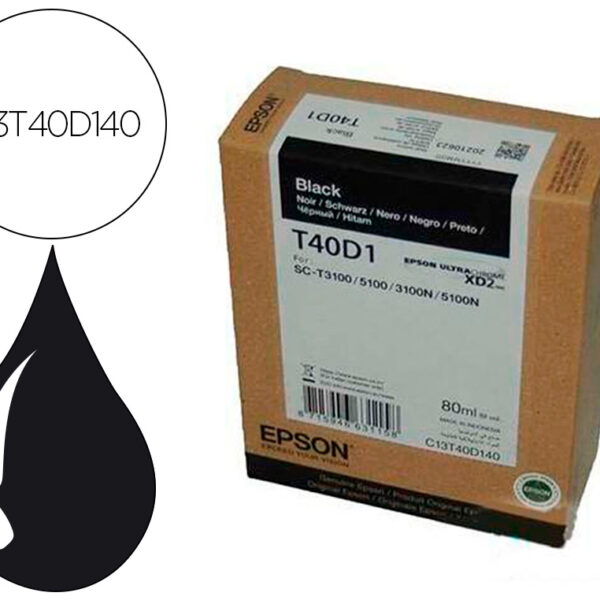 TINTEIRO EPSON ULTRACHROME XD2 PRETO T40D140 SC-T3100 / SC-T5100 80 ML