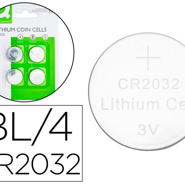PILHAS Q-CONNECT TIPO BOTAO LITIO CR2032 3V BLISTER DE 4 UNIDADES