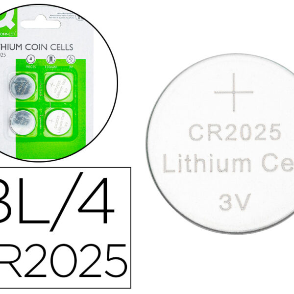 PILHAS Q-CONNECT TIPO BOTAO LITIO CR2025 3V BLISTER DE 4 UNIDADES