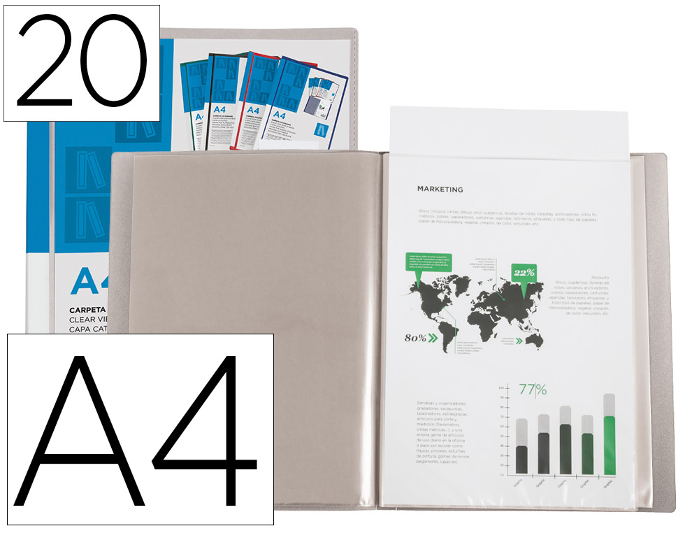 CAPA CATALOGO LIDERPAPEL 20 BOLSAS DIN A4 TRANSPARENTE – QT.1