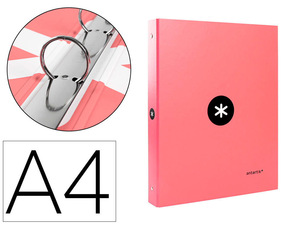 PASTA LIDERPAPEL ANTARTIK A4 FORRADA 4 ANEIS 25 MM REDONDOS COR CORAL – QT.1